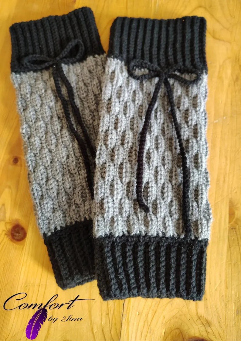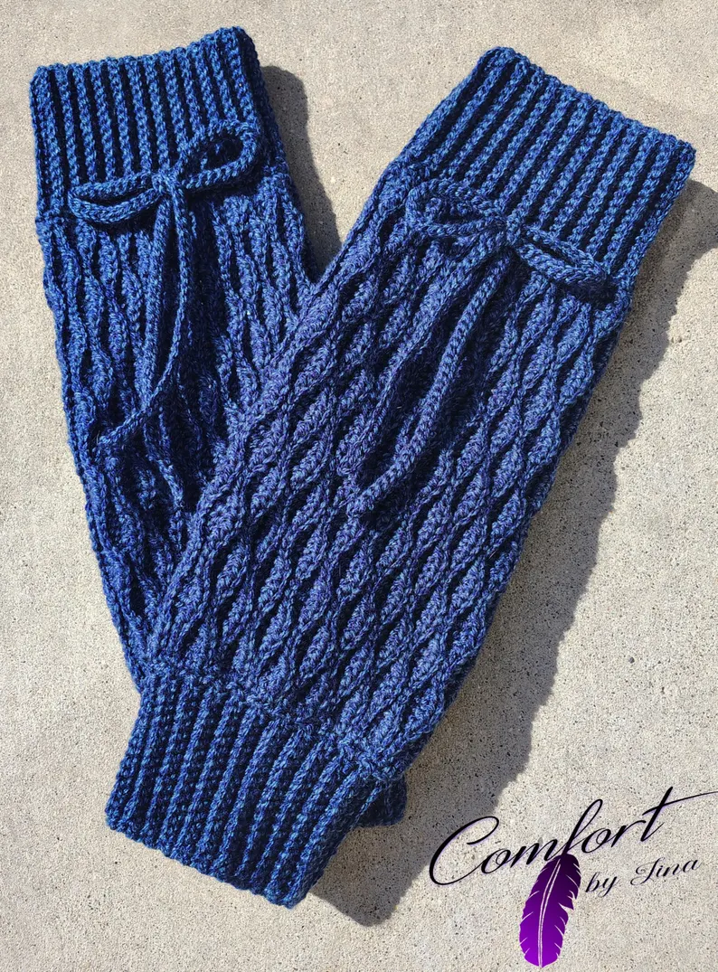 Beautiful stretchy leg warmers, perfect for keeping your calves warm on a brisk day! One size fits most. Machine washable.