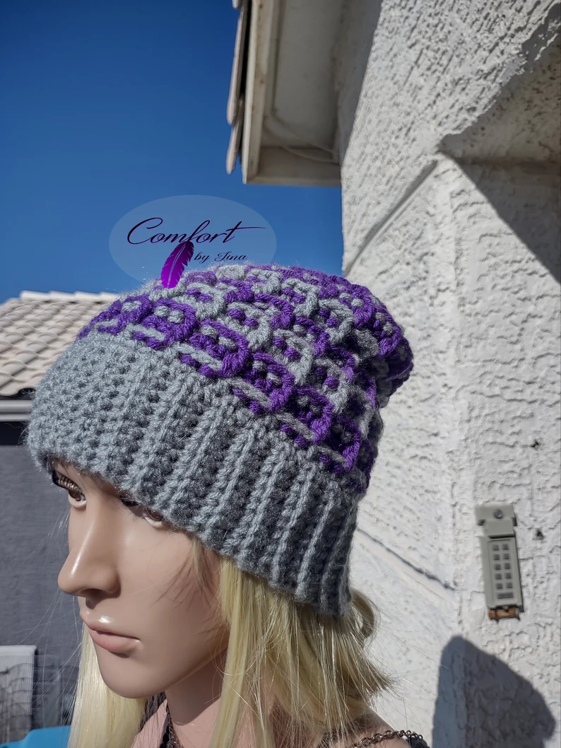 Be the first to review “Ribbed Beanie – Purple and Gray”